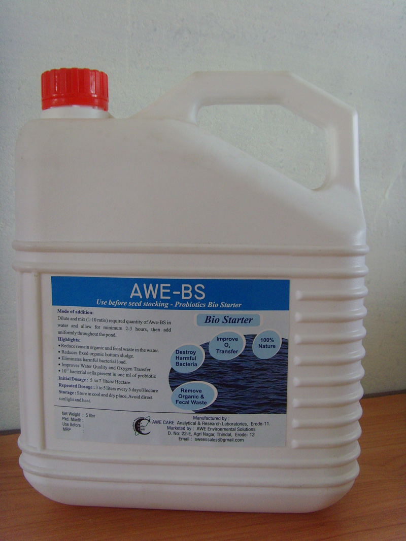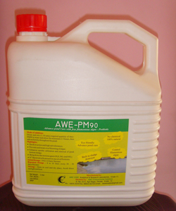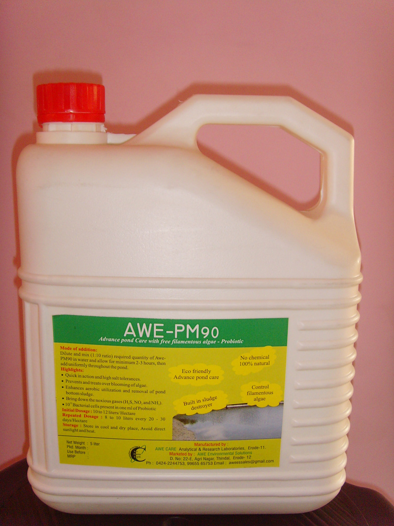 AWE-microbial products are a probiotic blend of bacteria that will keep pond healthy and free of filamentous algae and pond sludge. Products are in a highly concentrated form and contains above 5x1012 microbial colonies per ml. It is a unique blend of carefully selected naturally occurring micro organisms. Awe-products are is a balanced formula of different microbial strains, which work synergistically to lower the toxicity level in the pond and create a healthier and more beneficial environment for fish and prawn. The initial dose will start your population of good bacteria and the repeat doses will top up the population.
